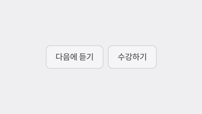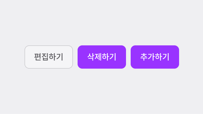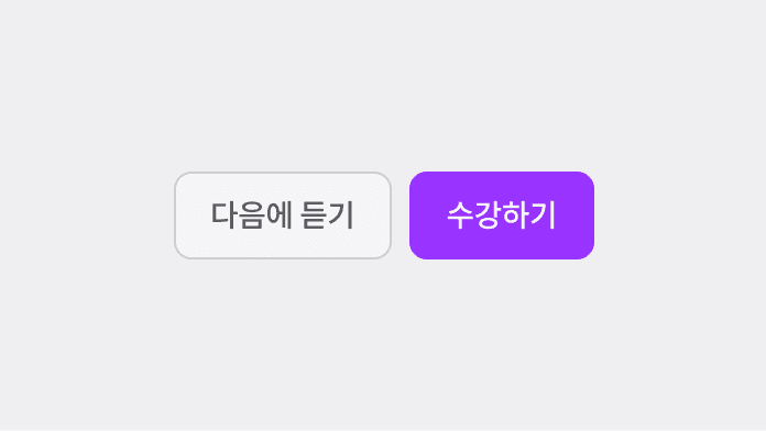 Button은 가장 주요한 UI 컴포넌트입니다. 정해진 스타일 가이드에 따라 사용하며, 시스템 일관성을 위해 임의 변경은 권장하지 않습니다. 여러 버튼이 함께 사용되는 경우, 방향키 또는 Tab 키로 포커스 이동을 지원합니다.