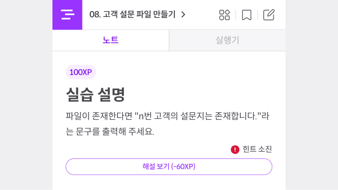 화면 내에서 사용자가 선택할 수 있는 추가 행동을 명확하게 전달하는 텍스트입니다.
