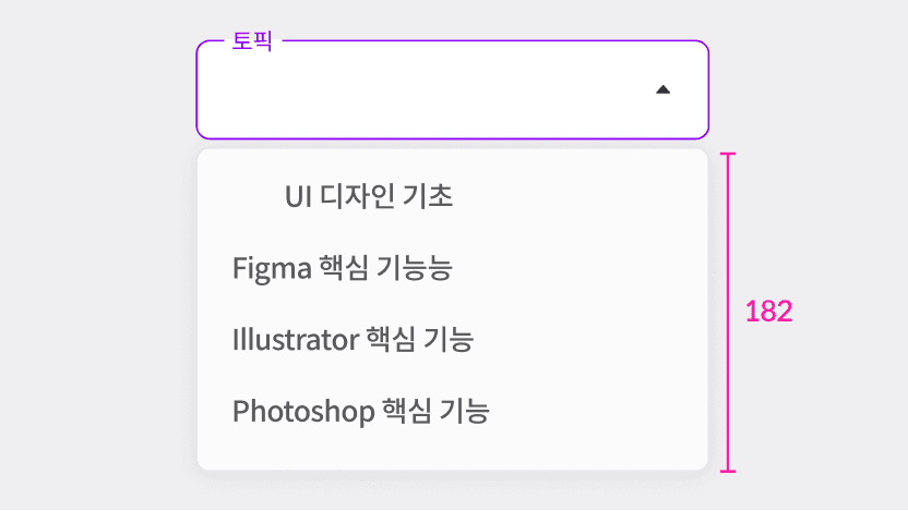 드롭다운의 기본 단위 요소로, 사용자가 선택할 수 있는 옵션의 텍스트입니다. 명확하고 간결한 텍스트로 구성되어야 합니다.
