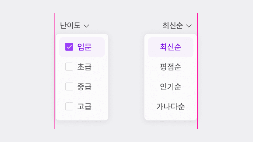 Dropdown의 위치에 따라 정렬 방식을 선택할 수 있습니다.