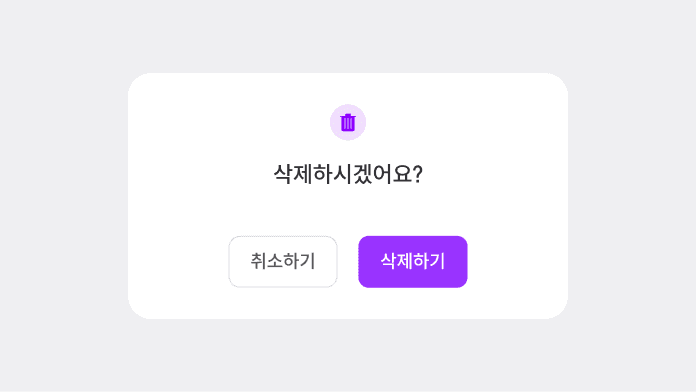 사용자가 수행해야 하는 주요, 보조 액션을 나타내는 버튼을 포함합니다.