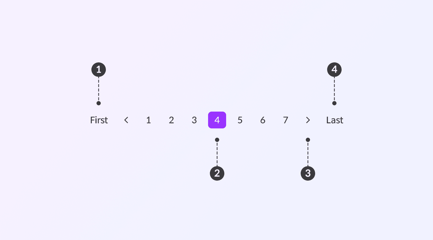 Pagination은 페이지 간 이동을 위한 내비게이션 컴포넌트입니다. 이전/다음 버튼과 페이지 번호 버튼을 통해 사용자가 콘텐츠를 효율적으로 탐색할 수 있도록 돕습니다.