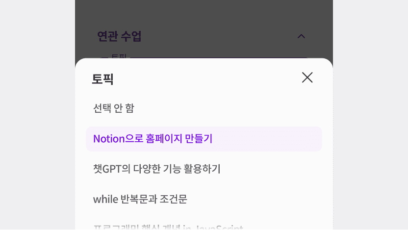 모바일 환경에서는 드롭다운 대신 바텀 시트 형태로 작동합니다.