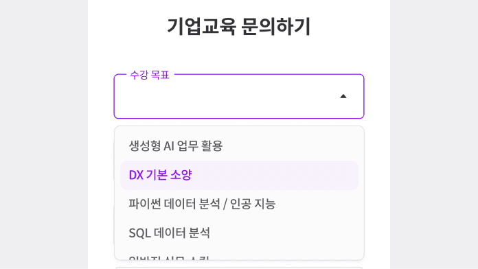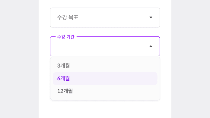 사용자가 옵션 중 하나를 선택할 수 있도록 하는 드롭다운 형태의 컴포넌트입니다.