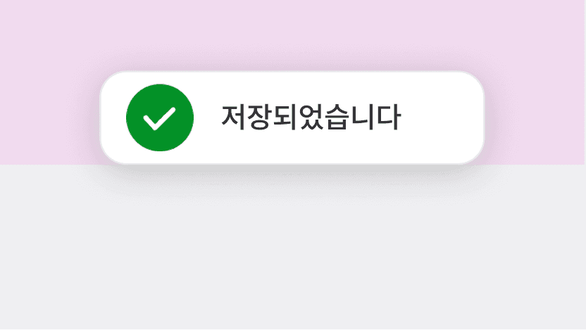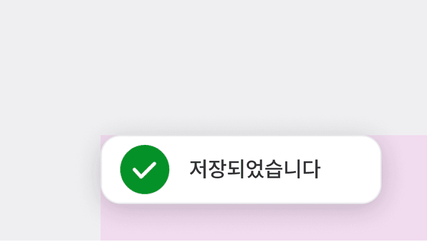 Toast 컴포넌트는 사용자 작업에 의한 시스템 변경 사항을 즉각적으로 알려주는 컴포넌트입니다. SnackBar 컴포넌트와 달리 작업 완료, 상태 변화 등에 대해 2-3초간의 짧은 시간 동안 피드백을 제공하고 사라집니다.